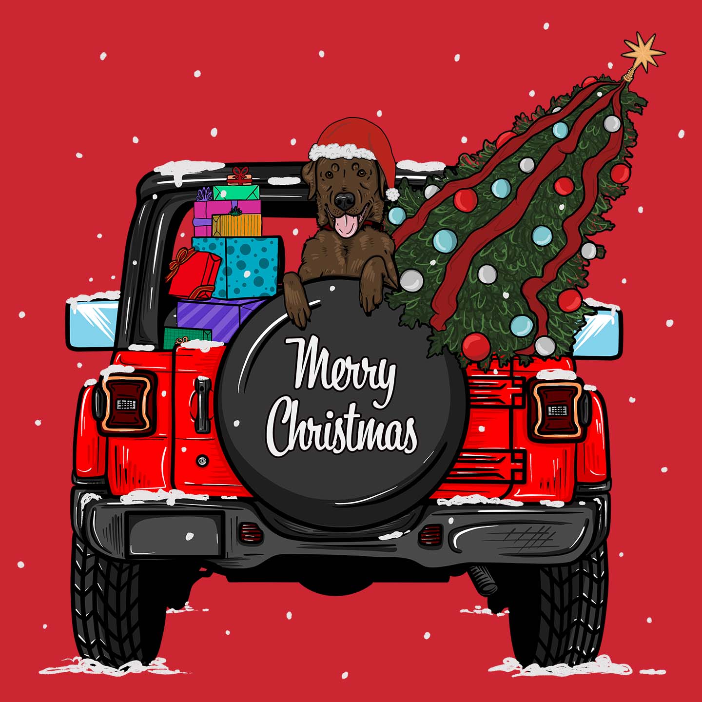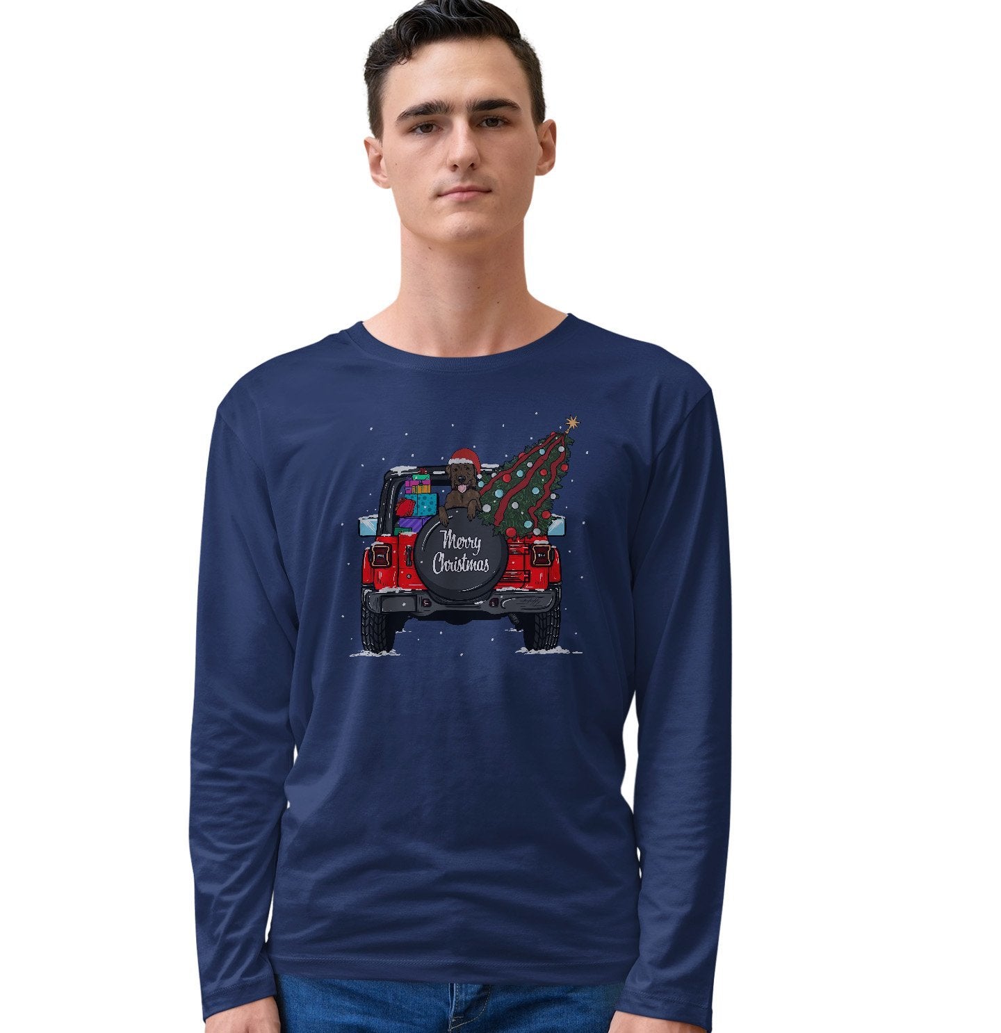 Christmas Jeep Chocolate Lab - Adult Unisex Long Sleeve T-Shirt